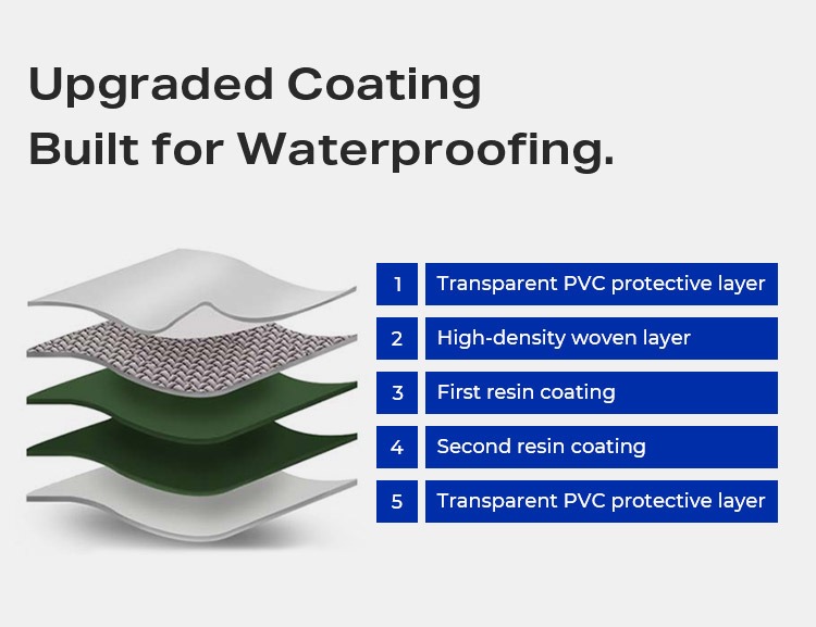 ЧИТАТЬ ДАЛЕЕЭтот прочный износостойкий полиэтиленовый брезент из пластика синего и белого цвета изготовлен с высокой точностью из высококачественного, экологически чистого полиэтиленового полимера, что гарантирует нетоксичность, отсутствие запаха и долговечность материала со стабильными эксплуатационными характеристиками. Брезент имеет трехслойную композитную структуру: тканый базовый материал из полиэтилена высокой плотности в сочетании с двухсторонними полимерными водонепроницаемыми покрытиями, образующими двухцветный защитный слой, который обеспечивает как водостойкость, так и затенение, обеспечивая при этом отличную защиту от ультрафиолета. Поверхность обработана водоотталкивающим составом в виде листьев лотоса, что обеспечивает превосходные противопроникающие свойства и эффективно блокирует дождевую воду и высокие температуры. Он устойчив к солнечному свету, ультрафиолетовому излучению, холоду и старению, сохраняя свою форму и долговечность даже при длительном использовании.